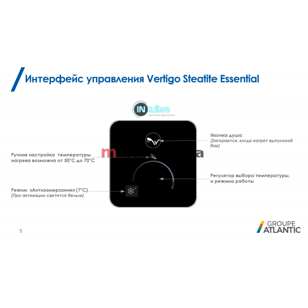 Особливості | Режим «Ручне налаштування» в діапазоні 50-70°C. Режим "FROST FREE" - автоматична підтримка температури +7°C. Інтуїтивний інтерфейс користувача. Дисплей, що відображає процес нагрівання. Можливість вертикального чи горизонтального монтажу. Double Tank Technology - два баки, два «сухих» стеатитових нагрівальних елементи, два магнієві аноди. Патрубки подачі холодної та відбору гарячої води з нержавіючої сталі. Надточний електронний термостат. Захист від перегріву у кожному баку. У комплекті кабель з вилкою, запобіжний клапан, діелектрична муфта, кронштейни, шаблон для монтажу |